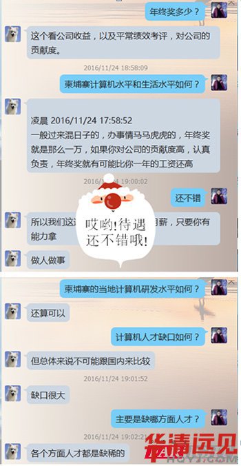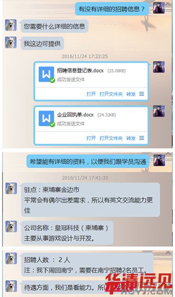 就在昨天,突然有柬埔寨的企業(yè)找到我們?nèi)A清遠見就業(yè)老師的聯(lián)系方式,聽聞華清遠見的培訓(xùn)很不錯,想找一些學(xué)員赴柬工作。有圖有真相,這家企業(yè)自稱是柬埔寨IT名企,本著對學(xué)員就業(yè)負責(zé)的態(tài)度,就業(yè)部老師將會近一步核實企業(yè)情況,才好推薦學(xué)員到該公司就業(yè)。對比IT行業(yè)發(fā)展如火如荼,IT人才劇增的今天,出國就業(yè)或許也是一種途經(jīng),但一定要掌握對方公司的詳細信息。據(jù)深圳校區(qū)就業(yè)老師反映,深圳中心曾有柬埔寨企業(yè)招聘,鑒于故土難離的想法沒能成行。