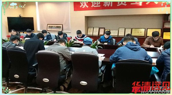 接著人事安排學生們進行筆試。人們都說選擇好的平臺、擁有好的辦公環境,努力、奮斗,舍我其誰。曾經多少個不眠夜我們都熬過去了,區區小筆試,在華清學子這里也是小巫見大巫。時間倒退到筆試現場,讓我們一起欣賞。。。