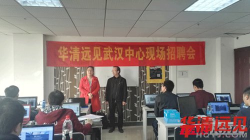 首先是就業老師陳老師接待華礪智行(武漢)科技有限公司的人事經理邱女士以及技術經理任先生,他們在陳老師的帶領下來到華清遠見武漢分中心1110教室進行宣講。陳老師介紹企業宣講人以及規則制度,請同學們把手機調成靜音,宣講完后有疑問的可以舉手提問。