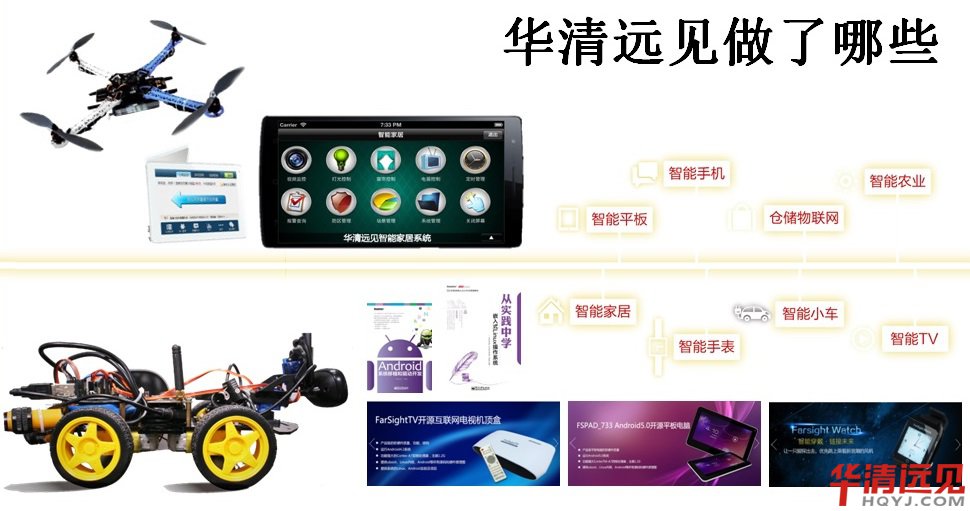 華清遠見教育科技集團總裁季久峰倡導,在嵌入式人才培養上,應始終堅持“興趣學習”的課程設計原則。嵌入式教學依靠單一的、過時的開發板的時代已經過去了,把當下新潮的硬件產品拿到課堂上來,才能夠真正的激發學員的學習熱情。華清遠見集團擁有幾十人的專業研發團隊,目前已成功研發諸如開源平板電腦、智能手表、智能機頂盒、智能小車、智能手環等時下流行的產品,并快速應用到課程內容和項目實訓中,這樣才能真能讓學員工作以后快速上手 。