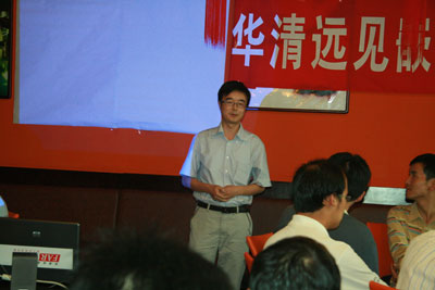 在參會(huì)的嘉賓進(jìn)行完簡短的自我介紹之后,主持人分別邀請(qǐng)華清遠(yuǎn)見教育科技集團(tuán)院長季老師、學(xué)術(shù)總監(jiān)劉老師給大家講話。軍人出身的季久峰院長一反平時(shí)慣常的正裝,一身輕松的T恤、仔褲讓大家倍感親切,面對(duì)這些事業(yè)起步的老學(xué)員們,季老師回憶起自己創(chuàng)業(yè)時(shí)的不平凡經(jīng)歷,也分享了一下成功的經(jīng)驗(yàn)。