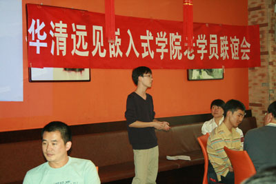 原定下午3:30開始的活動(dòng),剛過2:00就有很多老學(xué)員陸續(xù)到場(chǎng),在現(xiàn)場(chǎng)準(zhǔn)備的簽到表上,老學(xué)員們欣喜地查找著同班同學(xué)的名字,用眼睛快速搜尋著那些曾經(jīng)熟悉的身影。見面之后的一聲“兄弟,黑了,哪里曬去了?”總是會(huì)惹來陣陣會(huì)心的笑聲。“一年(兩年)不見了,兄弟姐妹們還好吧?”“王老師,我們班的女生誰會(huì)來啊?”“哎呦,曾老師,您還是那么gentleman啊!”“老范,這邊、這邊來坐,兄弟們都在這兒呢!”曾經(jīng)四個(gè)月為了同一個(gè)目標(biāo)而打拼的共同經(jīng)歷,讓老學(xué)員們?yōu)檫@次的相聚興奮不已。