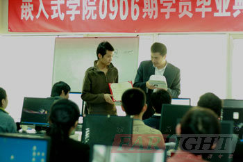 2009年10月27日,14:00時(shí),華清遠(yuǎn)見(jiàn)教育科技集團(tuán)北京總部0906期結(jié)業(yè)典禮隆重舉行。結(jié)業(yè)典禮當(dāng)天出席參加的華清遠(yuǎn)見(jiàn)教育科技集團(tuán)老師有:華清遠(yuǎn)見(jiàn)教育科技集團(tuán)的院長(zhǎng)季老師,副院長(zhǎng)賈老師,技術(shù)總監(jiān)劉老師及就業(yè)指導(dǎo)老師裴老師,整個(gè)典禮由班主任王老師主持。
