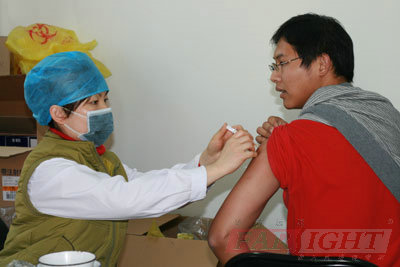 2009年12月4日下午14:00整,華清遠見教育科技集團組織全體師生到北京科技大學(xué)校醫(yī)院集體接種甲流H1N1疫苗。