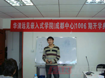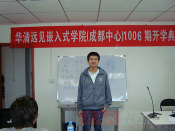 典禮過程中,陶老師的上臺,為各位學員分清了嵌入式行業形勢,展望行業未來和樂觀的發展前景,大大堅定了大家對嵌入式行業發展的決心,加上華清遠見這樣一個良好的平臺,更增強了學員們的信心。而接下來教學總監楊老師生動幽默的發言,也贏得了在場各位師生的認可,他倡導一種無處不在的交流溝通和踏實謙遜于一體的開放的學習心態,一番意味深長的話語,不僅為大家現在的學習生活,更為以后的工作生活作了積極的引導,使人豁然開朗。后,全部學員還逐一上臺作了自我介紹,他們中有的來自山東,有的來自重慶……四面八方;有的是有工作經驗的,有的是在校未畢業的大學生,大家來自不同的地方,不同的家庭,有著不同的經歷,不同的性格,但今天卻因對嵌入式有著共同的愛好與追求,而相聚于華清遠見,既是華清遠見的實力使之,也是大家的緣分所致,相信在華清遠見未來四個月的學習生活中,他們將成為共同奮戰親密無間的戰友,建立起濃濃的兄弟情,深深的朋友誼!后,希望華清遠見成都中心1006期就業班的學員能在華清遠見的團隊中,開心學,用心學,后學有所成,學有所用!