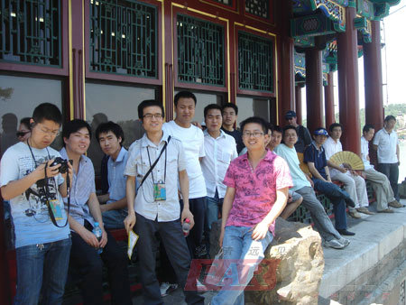 6月20日上午10點。我們相約在頤和園正門的售票處集合。對于遲遲未到的幾位學員,大家都翹首盼望,如果時間再長一點,恐怕長頸一族即將誕生了,呵呵!在這段時間里大家聚在一起開始天南地北的聊天,輕松愉悅的心情洋洋灑灑,綻放在每個學員的臉上。10:30分,姍姍來遲的同學,每一個都是我們的期盼。對于遲到者,我們大家想出一個整人的辦法,我們擺成一弧形,讓他們蹲在中間接受我們直接的表達方式。10:40分,我們出發在頤和園正門合影,露出開心的笑容。大部隊終于開始向前挺進,前進,天氣很好,心情實在是很好!