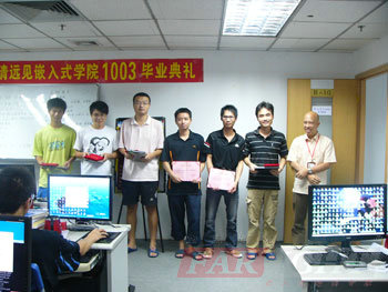 典禮由班主任曹老師主持,首先由梁老師致辭。梁老師說,1003期的學員在過去的四個多月的時間里,學習表現非常的積極認真,所以在這次的畢業答辯中,成績優異的學員很多,特別是智能機器人項目組的學員,取得了非常令人矚目的成績!這些成績的獲得,除了指導老師的悉心指導之外,更多的是學員的勤奮和努力,而且有一個不可忽視的原因,就是整個組的組員,在組長呂坤的帶領下,彼此配合的很默契,這是項目取得成功的一個非常重要的因素。他告誡其他的學員,以后在工作中,一定要注意團隊的配合,充分發揮合作的精神,才能將一個大的項目很好的完成。后他祝愿大家找到一份稱心如意的工作!