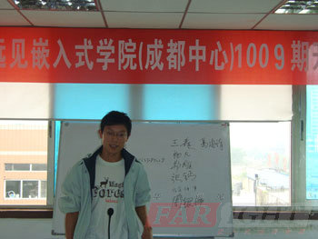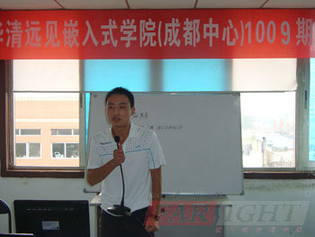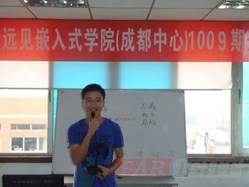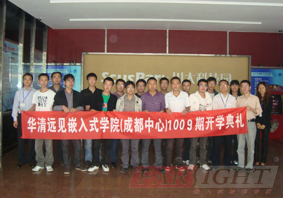 2010年10月8日,華清遠(yuǎn)見教育科技集團(tuán)成都中心1009期就業(yè)班開學(xué)典禮在中心嵌入式第三實驗室隆重舉行。典禮由成都中心班主任周老師主持,現(xiàn)場邀請并出席的嘉賓有:華清遠(yuǎn)見成都中心負(fù)責(zé)人陶老師,專業(yè)講師楊老師,王老師等。