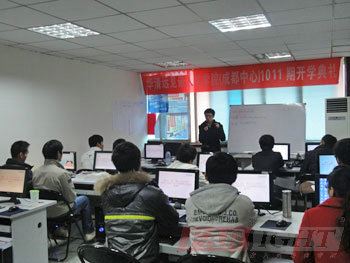 在結束了十天的C語言基礎補習后,2010年11月29日,華清遠見成都中心1011期班正式進入了嵌入式Linux專業課程的學習階段,當天上午,1011期的開學典禮在成都中心第一嵌入式室實驗室隆重舉行。華清遠見成都中心總負責人陶老師,教學負責人楊老師,以及專業授課老師王老師,課程咨詢老師劉圣等均出席了本次開學典禮。