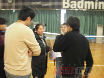 第三、四輪比賽只用一個場地,其他兩個場地安排學員自由打。第三輪比賽更為激烈,這次的組合比較巧,兩組是不同班級的學員比,還有一組是高老師跟學員比,剛開始比的時候,1011班的學員都在那里幫同班同學加油,在一旁自由打的1009班的學員看了之后,也都紛紛過來幫助同班同學加油,加油聲越來越大,負責場地管理的工作人員都不得不出來制止,呵呵,大家的熱情高漲。這輪比賽下來舒時偉、粟星和高老師終晉級。