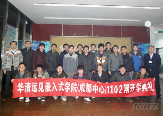 2011年2月21日,借著新年的喜慶,華清遠見成都中心嵌入式Linux&Android就業班1102期的開學典禮,在中心嵌入式第三實驗室隆重舉行。作為成都中心2011年新年后第一個開課的班級,1102期的開學典禮得到了中心各部門老師的高度關注。典禮于上午九點準時開始,由華清遠見成都中心班主任周老師主持,出席當天開學典禮活動現場的嘉賓有華清遠見成都中心負責人陶金華老師,教學負責人楊曉鵬老師,專業任課老師王老師以及中心教務處,市場部,及咨詢部等諸位老師。而對在座的1102期學員來說,經過之前一段長時間C語言基礎的扎實學習后,今天將真正進入到為期四個月的嵌入式LINUX開發課程的學習,大家臉上的興奮之情都溢于言表。