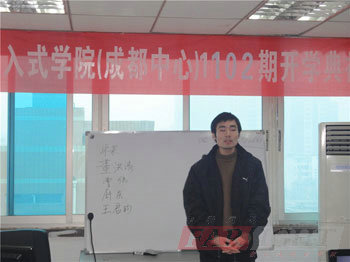 典禮第一項首先由華清遠見成都中心的總負責人陶金華校長為典禮致辭。在講話過程中,陶校長首先結合自身多年專業從事職業規劃管理的結驗,以及華清遠見多年來一直秉承的教學管理理念,向在座的各位1102期學員分享了一種成功的方式“刻苦+方法+堅持+福得=成功”,接著,陶老師還就目前嵌入式行業的發展,及華清遠見自身的發展狀況進行了具體的分析和介紹。由過去幾年嵌入式技術給人們生活帶來的種種便捷,到目前甚至未來十余年社會生活對涵蓋甚廣的嵌入式行業的迫切需求,讓在座的1102期的各位新學員更加明確了學習的目標,也同時給足了大家奮斗的動力。而這樣的一份工作,也會因更多社會價值的創造,更顯得樂趣與大義,必將會成為一個人可以為之奮斗終身的事業。而北京華清遠見在行業十余年來的用心經營和卓越的貢獻,正是在為更多志同道合的嵌入式愛好者,進入這個蓬勃發展的行業或是得到更長足的發展奠定基石,創造一種機遇和優質的平臺!