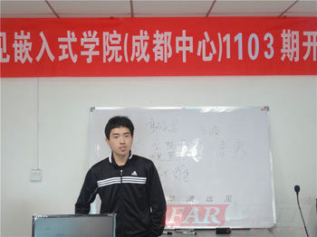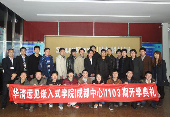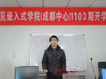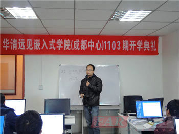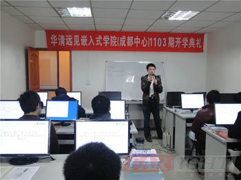 結(jié)束十天的基礎(chǔ)補(bǔ)習(xí),經(jīng)過清明假期的短暫休整后,2011年4月6日華清遠(yuǎn)見教育科技集團(tuán)成都中心1103期就業(yè)班正式開班,并于當(dāng)天上午九點,在成都中心嵌入式實驗室二隆重舉行了開學(xué)典禮。