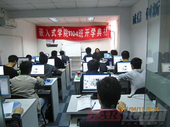 上海分中心負責人高老師為開學典禮致辭,首先從宏觀上為學員分析了嵌入式行業的發展前景,然后從相關政策對物聯網大力推行的良好發展形勢來分析,目前在全國正是嵌入式行業發展的佳時機,對在座各位1104期學員,今天選擇嵌入式這個方興未艾的行業表示了肯定。接著對華清遠見的發展史做了詳細的介紹,并對嵌入式行業的前景、與學院合作的單位、上海中心前幾期學員學習情況和就業情況等做了簡單的介紹,并建議同學們在中心上晚自習,周末也安排好時間到中心復習和預習,把現在積極的學習態度保持到后,遇到不懂的問題大膽、積極的請教老師或者多跟同學討論解決。只有在學院里認認真真的掌握好每個知識點,并真正掌握了嵌入式技術,就業就是一件順其自然的事情。后,鼓勵大家努力學習,早日成為一名優秀的嵌入式工程師。