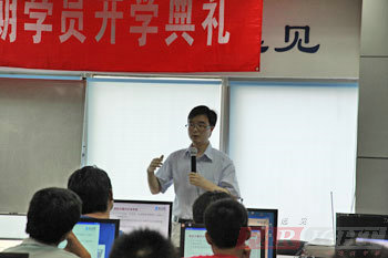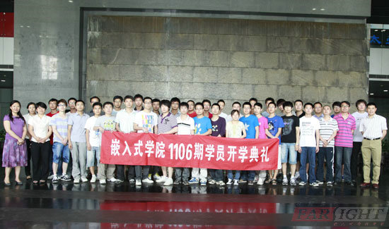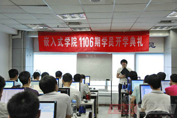 在王老師的講話結束后,由華清遠見教育科技集團院長季老師為開學典禮致辭,季老師對華清遠見教育科技集團的文化、發展歷程及授權合作單位進行了簡短的介紹,并對當前的關注熱點“物聯網”、“云計算”、“電子書”、“移動通訊設備”等進行分析,讓大家能夠充分感受到嵌入式行業的優勢和迅猛發展的現狀。同時季老師也鼓勵1106期的學員要努力學習,充分調動起自己的興趣和學習積極性,在華清遠見各位老師的幫助下,真正達到學有所成,終成為一名合格的嵌入式工程師。后季老師也給每位同學提出了幾點希望,希望同學們能夠迅速找到適合自己的學習方法,真正做到有質有量的學習。