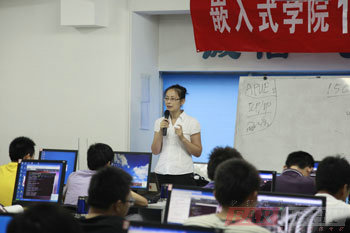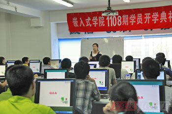緊接著由華清遠見教育科技集團院長季老師為開學(xué)典禮致辭,季老師對嵌入式行業(yè)的前景及與企業(yè)合作的單位授權(quán)等都進行了的介紹,特別針對2011年的十大新興技術(shù)與嵌入式研發(fā)的密切相關(guān)性進行了分析,也會目前大家普遍關(guān)注的物聯(lián)網(wǎng)、云計算等技術(shù)及應(yīng)用領(lǐng)域進行了剖析,讓同學(xué)們更多的看到了嵌入式行業(yè)蓬勃發(fā)展,人才需求如火如荼的現(xiàn)狀。同事季老師也鼓勵新學(xué)員要努力學(xué)習(xí),調(diào)整自己的心態(tài),充分利用這四個月的時間,將自己塑造成一名合格的嵌入式工程師。