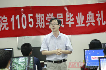 在學員們的熱烈掌聲中,季老師深情致辭。他向學業(yè)有成,即將踏上新的人生征途的1105期畢業(yè)生表示熱烈的祝賀!向那些為了同學們的成長、成才而付出辛勤勞動的一線教師們表示衷心的感謝!季老師同時對畢業(yè)生提出三點希望:一是希望畢業(yè)生彼此間常聯(lián)系溝通,拓展人脈;二是希望畢業(yè)生心系學院,常與老師聯(lián)系;三是希望畢業(yè)生面試時心態(tài)良好,找到一份稱心如意的工作。后他祝愿畢業(yè)生們飛得更高、更遠!