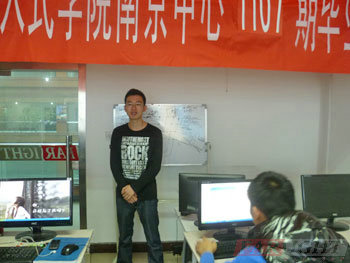 在兩位老師講話結束后,典禮隆重請上了本期的三位優秀學員:董益鋒,張兆桃,曹成健。陳老師和馬老師分別為他們頒發了獎品。本期還評選了一位就業明星,冀老師和這位優秀學員做了合影留念,呵呵!