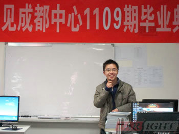 接下來進(jìn)行了隆重的畢業(yè)典禮。首先請(qǐng)到中心負(fù)責(zé)人陶老師為本次典禮致辭。陶老師首先關(guān)切的問大家,這四個(gè)月的時(shí)間辛苦嗎?大家都異口同聲的回答:“辛苦”。從大家回答的力度上看的出來,這辛苦中的沉淀和收獲是不言而喻的。陶老師非常欣慰的表示,看見大家從剛剛來的青澀小苗子,到現(xiàn)在長(zhǎng)成一顆顆可以迎接風(fēng)吹雨打的樹,希望以后成為一顆顆可以在這個(gè)行業(yè)里有一番不錯(cuò)成績(jī)的參天大樹。而在大家這個(gè)從樹到參天大樹的過程中,我們將是大家堅(jiān)實(shí)的后盾。