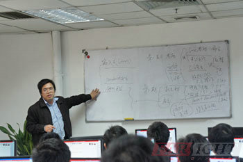 梁老師精彩的致辭后,由就業部郭老師為大家介紹培訓中心的就業情況以及就業指導。郭老師首先分析培訓中心學員們的類型,應屆生占三分之二,有工作經驗的占三分之一,針對每一種類型的學生有不同的學習方法與就業指導方法。接著分析歷屆的就業情況以及面試時的注意點。在平時學習時要注重基礎的掌握與堅固,在就業筆試當中尤其突顯,其次要有解決問題的能力,主動思考問題并于他人交流分享。