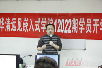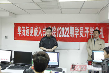 接著大家以熱烈的掌聲歡迎華清遠(yuǎn)見(jiàn)教育科技集團(tuán)院長(zhǎng)季老師為開(kāi)學(xué)典禮致辭,季老師以當(dāng)期普遍關(guān)注的 “物聯(lián)網(wǎng)”、“云計(jì)算”、“電子書(shū)”、“移動(dòng)通訊設(shè)備”等熱點(diǎn)問(wèn)題為切入點(diǎn)對(duì)嵌入式行業(yè)進(jìn)行了深入淺出的分析,并列舉了生動(dòng)的實(shí)例讓大家能夠充分感受到嵌入式行業(yè)未來(lái)發(fā)展的美好前景和迅猛勢(shì)頭。緊接著季老師對(duì)華清遠(yuǎn)見(jiàn)教育科技集團(tuán)的文化、發(fā)展歷程及授權(quán)合作單位進(jìn)行了簡(jiǎn)短的介紹, 后鼓勵(lì)全體學(xué)員充分利用在華清遠(yuǎn)見(jiàn)學(xué)習(xí)的時(shí)間,在華清遠(yuǎn)見(jiàn)各位老師的幫助下,真正達(dá)到學(xué)有所成,終成為一名合格的嵌入式工程師。