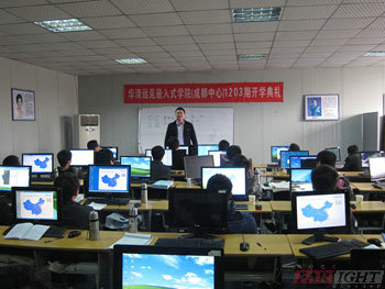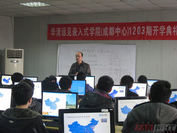 伴隨著熱烈的掌聲,我們有請到了成都中心校長陶老師為本次開班典禮致辭。陶老師首先對選擇嵌入式這個行業(yè)的學員表示了肯定,接著對華清遠見的發(fā)展史做了詳細的介紹,并對學院合作的單位等情況做了簡單的介紹。隨后陶老師指出,近幾年嵌入式產業(yè)在全世界各個領域都得到了廣泛的應用,并列舉了生動的例子讓大家能夠充分感受到嵌入式行業(yè)未來發(fā)展的美好前景和迅猛勢頭。我國也已經將嵌入式人才的培養(yǎng)納入了“信息技術緊缺人才培養(yǎng)工程”。后陶老師鼓勵全體學員充分利用在華清遠見學習的時間,在華清遠見各位老師的幫助下,真正達到學有所成,終成為一名出色的嵌入式工程師。