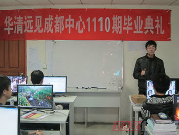 | 圖三、成都中心就業部老師談就業安排 | 圖四、成都中心1110期學員畢業分享1 |