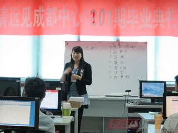 在陶老師的講話結束后,由教學部潘老師對四個月的學習做總結。潘老師回顧了四個月的學習過程中大家取得的進步和收獲,同時也指出了大家存在的缺點和不足。潘老師希望大家早日找到滿意的工作,并在今后的工作中能揚長避短,爭取更好的成績。