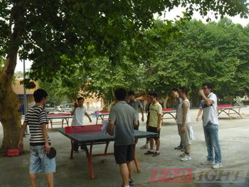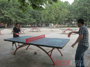 再看我們的乒乓球賽場(chǎng),選手們已經(jīng)等不急了,開始進(jìn)行淘汰賽,兩名乒乓球裁判正認(rèn)真負(fù)責(zé)的進(jìn)行計(jì)分。平常大家都忙于學(xué)習(xí),難得有時(shí)間和機(jī)會(huì)出來(lái)運(yùn)動(dòng),心情都格外的舒暢,打起球來(lái)也是信心十足,更有一些乒乓球高手,深藏不露,甚至還有級(jí)選手,可憐我們某些業(yè)余的學(xué)員好幾年都沒有碰過(guò)乒乓球拍,三局兩勝的比賽,剛比了兩場(chǎng)就大比分遭遇淘汰,本以為他會(huì)有些失落,卻看到他俏皮對(duì)正在拍照的班主任張老師做了個(gè)勝利的手勢(shì)。呵呵,和高手過(guò)招,雖敗猶榮,而且我們是友誼第一,比賽第二嘛。
