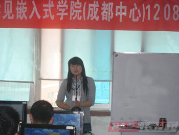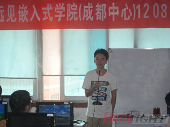 上午9時,開學典禮正式開始。首先,雷老師隆重的介紹了參加開學典禮的各位老師,接著,由成都中心陶校長為開學典禮致辭。陶老師首先對1208期所有學員表示熱烈的歡迎,然后結合自己多年在嵌入式行業的工作經驗,從嵌入式行業的現狀和前景兩個方面分析了嵌入式行業發展的良好趨勢,陶老師還介紹了華清遠見的成立背景、優勢、以及成都中心的相關情況,后他給學員們提了幾點希望:希望學員們不怕苦,不怕累,盡快早點適合自己的學習方法,在華清遠見各位老師的幫助下,經過四個月的學習終成為一名合格的嵌入式工程師。