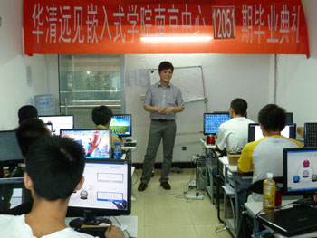 緊接著,進入了當天的畢業典禮,典禮首先有請上了由中心副校長郭老師為典禮致辭,這位可親可敬的大家長,主要對12051期這四個多月中在華清遠見的表現給予了有力充分的肯定;對大家今天獲得的成長表示了祝賀;對即將開啟的嶄新未來寄予了厚望;也深深的希望不久的將來,在座的各位每一位學生都能成為華清遠見的驕傲,榮歸這個嵌入式開發的大本營!一翻真誠的話頓時贏得了大家熱烈的掌聲。