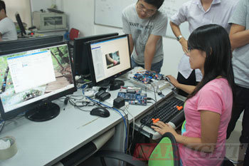 上午9:00,畢業答辯準時進行。本次答辯由庹老師主持,在庹老師向學員說明答辯注意事項,以及宣布答辯順序后,整個答辯緊張而有序地正式開始了。此次答辯分為四個組,分別是物聯網一組,物聯網二組,物聯網三組,3G組。首先由第一組的組長上臺展示他的畢業成果,介紹了他們組的成員以及整個項目功能與原理,接著詳細地介紹了他所研究的具體模塊,在大家的掌聲當中結束了他的精彩展示。接下來是老師有針對性地對該研究項目提了幾個問題,他都做出了令老師與同學滿意的回答。