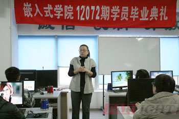 結業典禮首先由華清遠見教育科技集團院長季老師致辭,季老師首先對12072期學員為期四個月的學習做出肯定,并要求學員系統總結和回顧了學員們四個月的學習過程及取得的學習成果,同時季老師還鼓勵學員們對自己要充滿信心,要不斷的學習,對自己行業發展要充滿信心,并歡迎各位同學在工作后繼續與學院保持聯系,把華清遠見教育科技集團作為未來職業發展的充電大本營和基地。