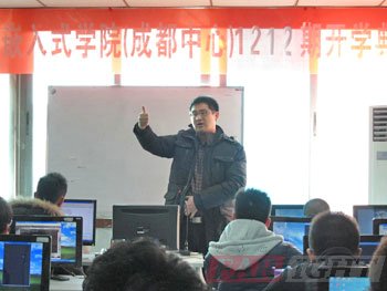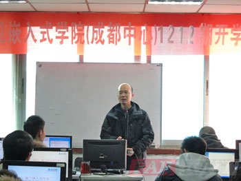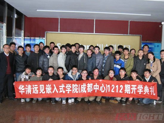 2012年12月31日, 華清遠(yuǎn)見成都中心1212期開學(xué)典禮在中心所在的四川大學(xué)大學(xué)科技園嵌入式實驗室一里隆重舉行。出席本次開學(xué)典禮的嘉賓有成都中心校長陶老師,學(xué)術(shù)經(jīng)理潘老師,教學(xué)部朱老師,就業(yè)專員龔老師,以及網(wǎng)絡(luò)工程師陳老師等。典禮由班主任張老師主持。