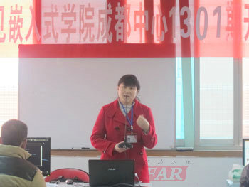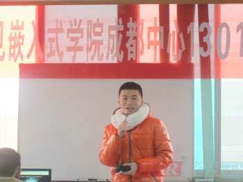 上午9時,伴隨著熱烈的掌聲,在班主任張老師的主持下典禮正式開始。首先,分中心校長陶老師代表華清遠見教育科技集團的全體工作人員對1301期全體學員表示熱烈的歡迎。作為嵌入式行業資深的職業規劃師,陶老師結合自己多年在嵌入式領域的工作經驗,分析了嵌入式行業的專業前景及發展方向,他強調了用人單位對崗位人員技能的具體要求。同時向學員們展示了華清遠見的發展歷程及師資隊伍的建設。分析了當前嵌入式行業的成長所面臨的時代環境,向新生提出具體要求和殷切期望,要求他們能夠刻苦學習,掌握學習方法,調整學習心態,遵守學院的規章制度并且通過正確的渠道合理的反映問題,期望他們經過四個月的學習能夠學有所成,成為嵌入式行業的棟梁之才。