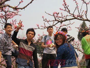 3月9日,周六一大早,121102期全體學(xué)員在華清遠(yuǎn)見成都中心所在的四川大學(xué)大學(xué)科技園集合,一起前往龍泉。一路上,大家談笑風(fēng)生,交流著近的學(xué)習(xí)心得,趣聞軼事。隨著車子緩緩的駛向郊外,空氣愈來愈清新,大家的心情也越來越舒暢。在去龍泉總站的路上,有專門去景區(qū)的車子停在路邊招攬游客。別致的花環(huán),俏麗的桃花,讓人對景區(qū)的美景充滿了期待。