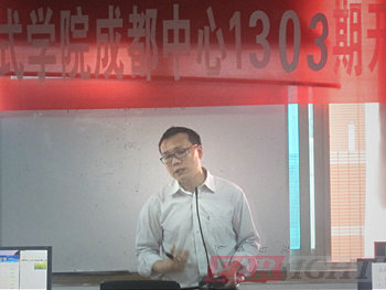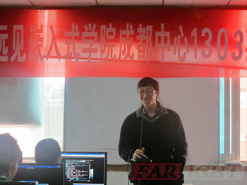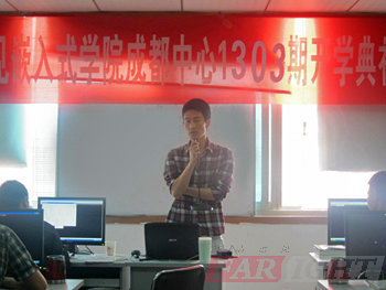 其次,華清遠見成都中心學術經理潘老師詳細的為大家講解了本次四個月階段培訓的課程及具體安排,同時也指出了以往學員在四個月學習中普遍出現的問題及正確面對的方法。他反復強調在四個月的學習中同學們應該注重設計思路的轉變,要求學員們通過四個月的學習掌握到扎實的基礎知識,在實際運用中多去積累,多跟老師交流。他希望大家在四個月的學習中勤奮上進,儲存到人生中重要的一筆財富。