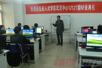 2013年4月19日華清遠(yuǎn)見(jiàn)嵌入式武漢中心12101期畢業(yè)典禮在武漢工程大學(xué)科技孵化器大樓804-1舉行。參加本次畢業(yè)典禮的嘉賓有:項(xiàng)目指導(dǎo)老師莊老師、就業(yè)指導(dǎo)老師周老師、班主任王老師,彭老師等。