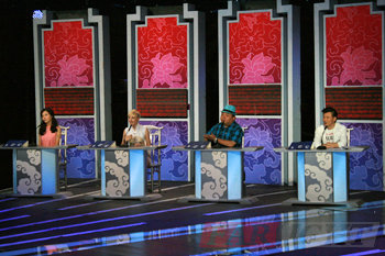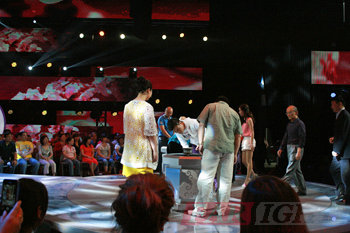 | 圖三、主持人王剛上場 | 圖四、李斌、劉剛等四位名人助陣 |