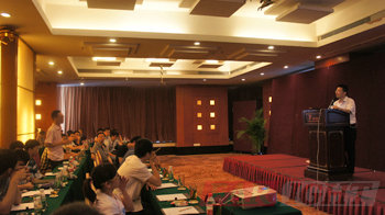 | 圖三、華清遠見深圳中心梁老師主持會議 | 圖四、鐘老師對android移動微博客戶端的實現做技術分析 |