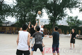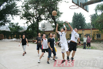 接下來我們又開始了“師生友誼賽”,這場比賽的開始“教師隊”以快速的防守和遠投將比分拉開,在場學員們無不驚訝教師們良好的籃球技巧,在比賽進行到20分鐘后,學員冠軍隊發揮出冠軍水平,傳球,運球,上籃,進!教師隊的老師們也因為沒有替補隊員消耗掉大半的體力,后只看著冠軍隊在球場上跑跳自如,生龍活虎。后“山鷹隊”還是以46::43戰勝了“教師隊”。