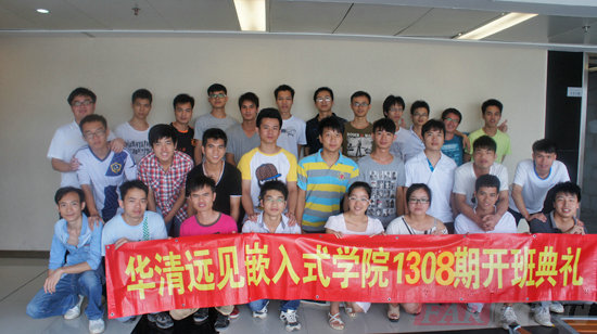 2013年6月28日,深圳華清遠見教育科技集團1308期在實訓四隆重舉行開班典禮。參加開班典禮的嘉賓有深圳分中心學術總監易老師、就業老師齊老師、技術督導關老師、講師徐沙老師、班主任唐老師等。