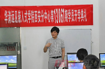西安的盛夏,在連日的高溫下早早到來。高溫焦灼下,這個城市也漸漸開始狂躁。如一場及時雷陣雨,像隨風潛入夜一般的透意清涼,華清遠見西安中心13061班在七月一號開始了一階段的學習。自6月17號基礎(chǔ)補習以來,13061期的學員便開始了踏實的學習征程。在基礎(chǔ)補習之后,華清遠見西安分中心嵌入式Linux&Android就業(yè)班13061期學員在2013年7月1號迎來了他們的開學典禮。