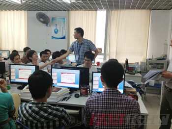 參訪期間,梁校長在實訓室五為五邑大學的師生們詳細介紹了華清遠見的基本情況、近期培訓教學的開展情況及學生畢業后在行業內的發展規劃,并針對我們華清遠見嵌入式及移動互聯網教學項目和新自主研發的Cortex-A8教學實驗平臺作了詳細的介紹,接著在梁校長的邀請下五邑大學的師生們分別參觀了華清遠見深圳中心的教學環境及研發的專業圖書和教材。華清遠見深圳中心的師資團隊、先進的教學設備以及優質的后勤保障體系都給五邑大學的師生們留下了極為深刻的印象。