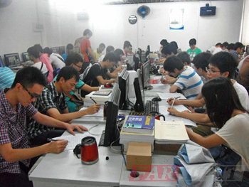 圖三、學生填寫問卷調查中 |