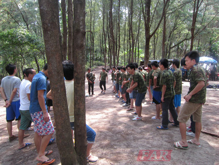 早上8點(diǎn)30分,大家都準(zhǔn)時(shí)在華清遠(yuǎn)見(jiàn)深圳中心的大樓門(mén)前集合,待班主任清點(diǎn)好人數(shù)后,大家一起整理好行裝,開(kāi)心地出發(fā)了!郊游的第一站:西沖CS野戰(zhàn)。一下巴士,直奔叢林CS戰(zhàn)場(chǎng),在教官的指導(dǎo)下分成土匪和警察組,介紹游戲規(guī)則及注意事項(xiàng),穿上專(zhuān)門(mén)衣服,拿上裝備,浩浩蕩蕩出發(fā)了。青春的腳步瘋狂奔跑起來(lái)。遠(yuǎn)處只傳來(lái)陣陣槍聲及嚎叫聲……半上小時(shí)后,以土匪完勝,警察落敗回到集合點(diǎn),每個(gè)人滿(mǎn)臉汗水及興奮表情。落敗的警察隊(duì)還時(shí)不時(shí)挑釁一下土匪隊(duì)只是運(yùn)氣好……陽(yáng)光穿過(guò)樹(shù)梢灑在這一群年輕人的人身上,光怪陸離,青春洋溢……