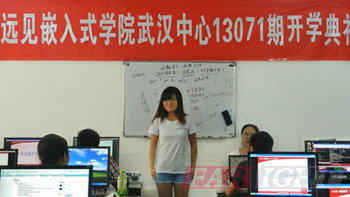2013年7月17日,華清遠見武漢中心13071期開學典禮在科技孵化樓804-2隆重舉行。出席本次開學典禮的嘉賓有武漢中心負責人周老師、培訓專家文輝老師、班主任陳老師等。