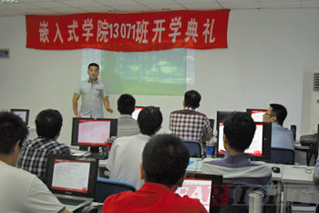 8月12日上午9:10在班主任廖老師的主持下開(kāi)學(xué)典禮正式開(kāi)始。首先廖老師做了簡(jiǎn)短的自我介紹并且代表華清遠(yuǎn)見(jiàn)全體師生對(duì)13071期學(xué)員的到來(lái)表示熱烈的歡迎。接著介紹了參加13071班開(kāi)學(xué)典禮的各位老師,接下來(lái)有上海中心行政老師講話,然后大家以熱烈的掌聲歡迎上海中心負(fù)責(zé)人王老師為典禮致辭,介紹了我們的師資力量和我們的就業(yè)情況,并且跟各位同學(xué)分享了相關(guān)嵌入式的專業(yè)性的技術(shù)交流,后來(lái)播放了一段很有代表性的視頻,王老師首先從宏觀上為學(xué)員分析了嵌入式行業(yè)的發(fā)展前景,然后從相關(guān)政策對(duì)物聯(lián)網(wǎng)大力推行的良好發(fā)展形勢(shì)來(lái)分析目前在全國(guó)正是嵌入式行業(yè)發(fā)展的佳時(shí)機(jī),對(duì)在座各位13071期學(xué)員今天選擇嵌入式這個(gè)行業(yè)表示了肯定。接著對(duì)華清遠(yuǎn)見(jiàn)的發(fā)展史做了詳細(xì)的介紹,并對(duì)嵌入式行業(yè)的前景、與學(xué)院合作的單位、上海中心前幾期學(xué)員學(xué)習(xí)情況和就業(yè)情況等做了簡(jiǎn)單的介紹。同時(shí)王老師也鼓勵(lì)13071期學(xué)員們努力學(xué)習(xí),充分調(diào)動(dòng)起自己的興趣和學(xué)習(xí)積極性,在華清遠(yuǎn)見(jiàn)各位老師的幫助下,真正成為學(xué)有所成的合格嵌入式工程師。然后王老師也給同學(xué)們錢(qián)強(qiáng)調(diào)了學(xué)習(xí)管理制度,也給每位同學(xué)提出了幾點(diǎn)要求,希望同學(xué)們能夠迅速找到適合自己的學(xué)習(xí)方法, 做到盡心盡力,學(xué)有所成。