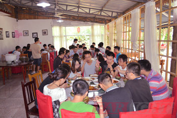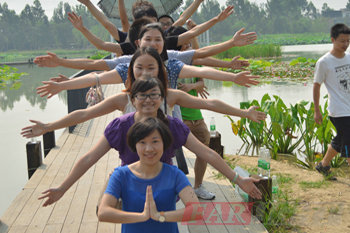 8月24日上午八點半,成都中心13071期全體學員準時在華清遠見成都中心所在的四川大學大學科技園集合,一起前往三圣鄉。在車上大家有說有笑,相處甚歡。公車漸漸駛近目的地,遠離了城市的喧鬧,換來了一片寧靜祥和之景。剛一下車,我們就直奔荷塘,大片的綠色立馬引入眼簾,學員們三兩成群的拍照留影。荷塘邊上的參天大樹,挺拔威武,樹下的小花小草,嬌柔羞澀,雖叫不出來名字,但是大伙兒還是對此充滿了好奇和驚喜。通過一條小徑進入荷塘,大片大片的荷葉,密密麻麻,散發出一種夏日荷葉的清香。這個時候來,看到的荷花都開得又大又艷,顏色有粉有白,從綠葉叢中冒出來,仰起了清秀的臉龐,分外妖嬈。美麗而富有光澤的花瓣上,滾動著一顆一顆猶如珍珠般的露珠,迎著陽光,閃著光亮。輕風一起,珠兒便“哧溜”一聲落進池水里,濺起一朵小小的碎玉般的水花兒。荷葉下波光粼粼,不時有小魚小蝦游過,惹得同學們追逐打鬧,大家仿佛都回到了無憂無慮的孩童時期。從荷塘出來的時候我們整隊前往事先預定的農家廣場--月色灣。在農家樂自由活動期間,就業部老師組織部分學員開展了鍛煉語言組織能力的游戲,在游戲中,有些平時不太愛表達的學員也融入了集體,享受起交流的樂趣。午飯時間到,大伙兒迅速來到餐桌用餐,面對滿桌的美味佳肴,大家胃口大開,漸漸在談笑聲中結束。吃飽喝足,到小院兒里散散步,以助消化。