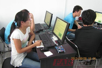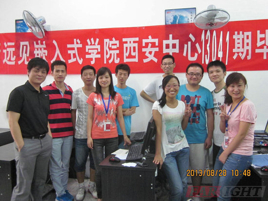 圖九、郭老師和西安中心13041期優秀學員王同學、馮同學合影 圖十、郭老師和嵌入式愛好者紀念獎獲得者李同學合影